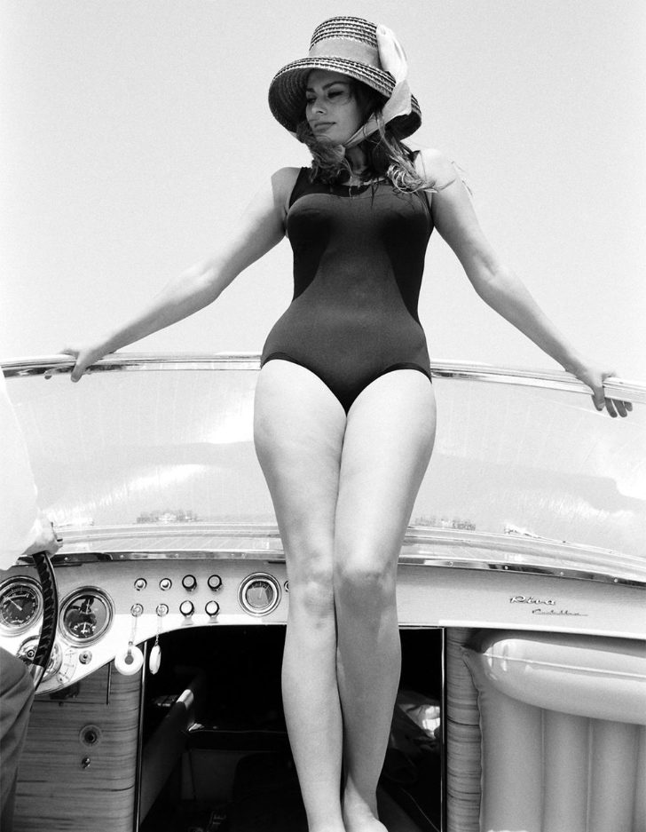 Former model-turned-actress Sophia Loren graces the screen in a figure-hugging black one-piece bathing suit topped with a straw sun hat in the 1961 film “Madame Sans-Gêne.” Despite receiving mixed reviews, the historical comedy proved the Italian actress’s charm and beauty, cementing her status as an icon.